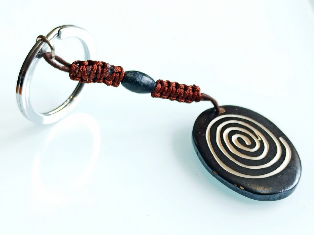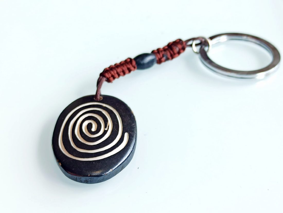 Este llavero es ideal para que la energía fluya a lo largo de tu día. Espiral tallada en pieza de hueso.
